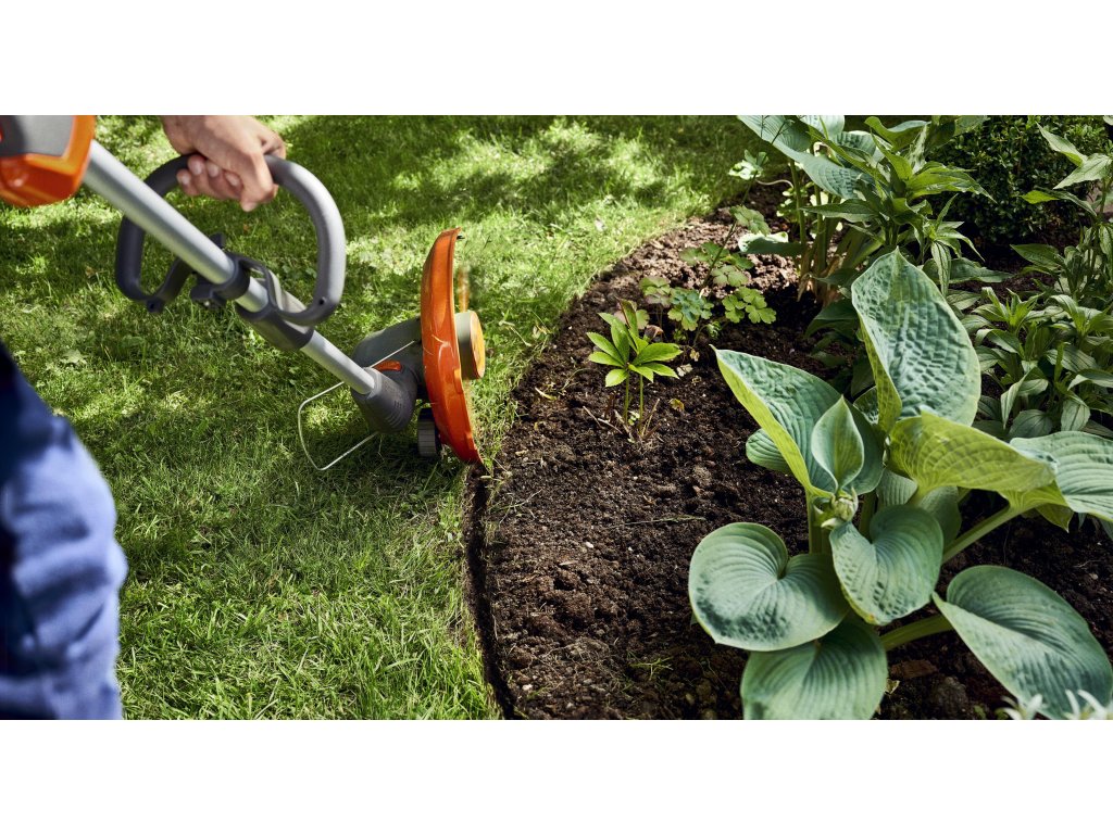 Jednoduchým otočením strunovej hlavy môžete využiť integrované vodiace koliesko, s ktorým bude kosenie okrajov trávnika dokonalejšie.