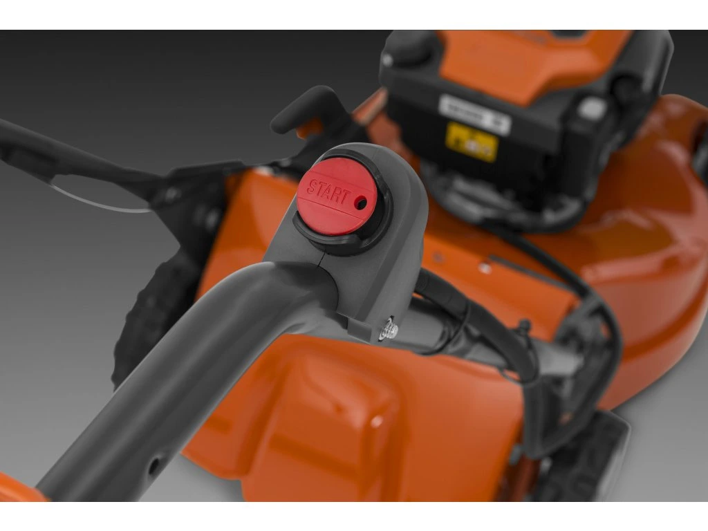 Elektrické štartovanie - Kosačku spustíte stlačením štartovacieho tlačidla a ovládacej páky prítomnosti obsluhy. Na zastavenie motora stačí uvoľniť páku prítomnosti obsluhy. Vďaka tomu je manipulácia bezpečná a nenáročná, čím sa minimalizuje riziko náhodného spustenia a prevádzky bez dozoru.