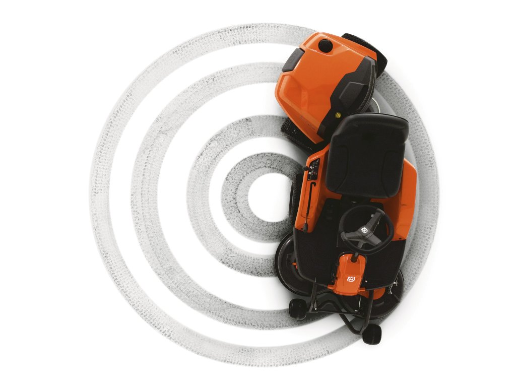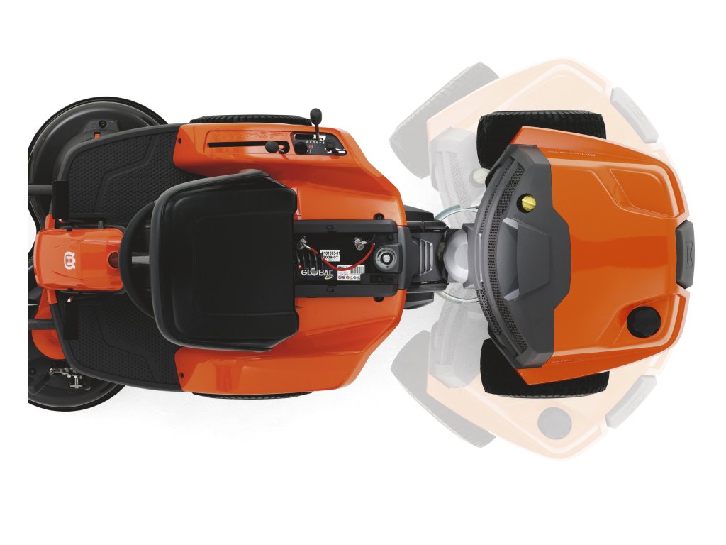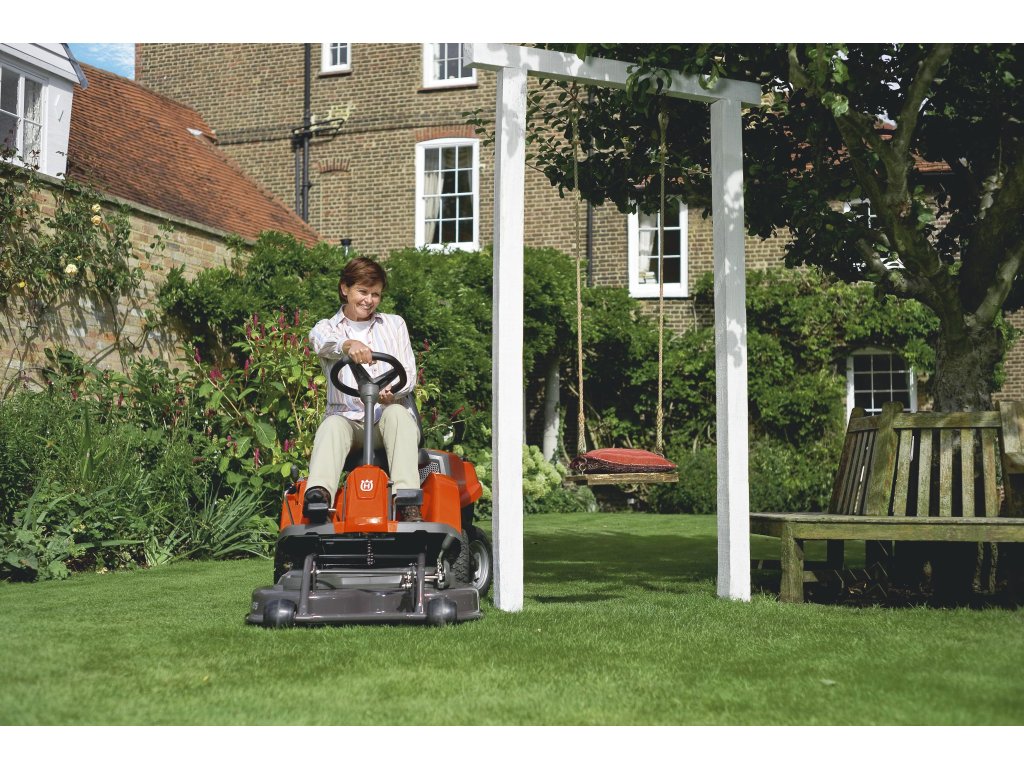 Motor umiestnený vzadu poskytuje lepší prehľad o kosení a menej hluku a emisií v oblasti vodiča v porovnaní s ridermi s motormi nainštalovanými vpredu.