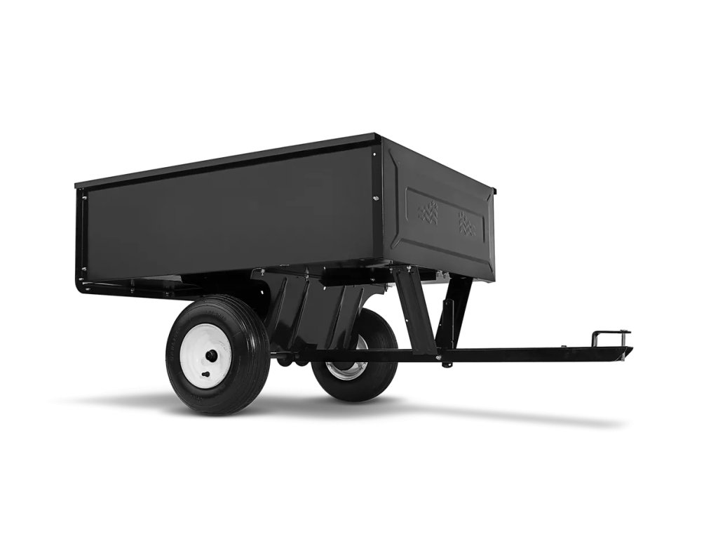 Vyklápací vozík so sklápacou zadnou stenou. Rozmery ložného priestoru: 108 x 82 x 31 cm. Rozmery vonkajšie: 152 x 84 x 71 cm
