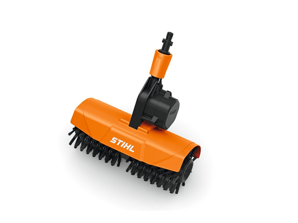 Rotačný kefový valec od STIHL je praktické príslušenstvo k vysokotlakovému čističu , ktoré môžete použiť na jemné čistenie citlivých povrchov. Kefy, ktoré sú súčasťou dodávky, sú vhodné najmä na terasy s drevenou alebo kamennou krytinou a na fasády alebo garážové brány . S voliteľne dostupnými mäkkými kefami môžete šetrne vyčistiť aj solárne systémy, okenné povrchy, rolety, zimné záhrady, ako aj lakované a plastové povrchy . Vďaka bajonetovej spojke môžete rotačný kefový valec rýchlo a jednoducho pripojiť priamo k pištoli, tryskovej tyči alebo teleskopickej tryskovej tyči STIHL, ktorá je k dispozícii ako príslušenstvo, na vašom vysokotlakovom čističi . Výmena kief je tiež jednoduchá a bez náradia pomocou rýchloupínacieho uzáveru. Rotačný kefový valec má pracovnú šírku 30 cm a ochranu proti striekajúcej vode na ochranu ľudí a životného prostredia pred striekajúcou vodou. Rotačný kefový valec je kompatibilný s elektrickými vysokotlakovými čističmi STIHL RE 80 až STIHL RE 170 PLUS, ako aj akumulátorovými vysokotlakovými čističmi STIHL REA 60 PLUS až STIHL REA 100 PLUS okrem RCA 20