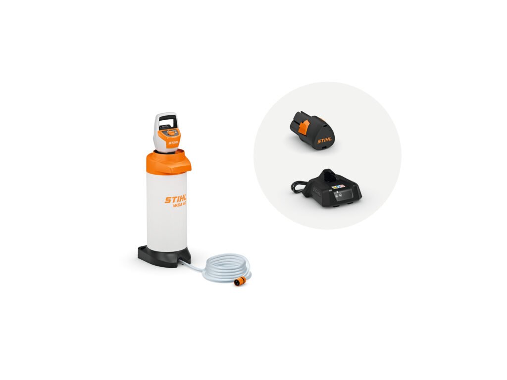 10litrová nádrž na vodu, plynulo nastaviteľný tlak 1,5 – 2,5 baru. LED indikátor stavu nabitia , mäkká rukoväť pre ergonomickú manipuláciu a pohodlné prenášanie WSA 40 . Čerpadlovú hlavu STIHL PKA 30, ktorá je súčasťou balenia, je možné použiť aj s postrekovačmi STIHL SG 21 a STIHL SG 31 .