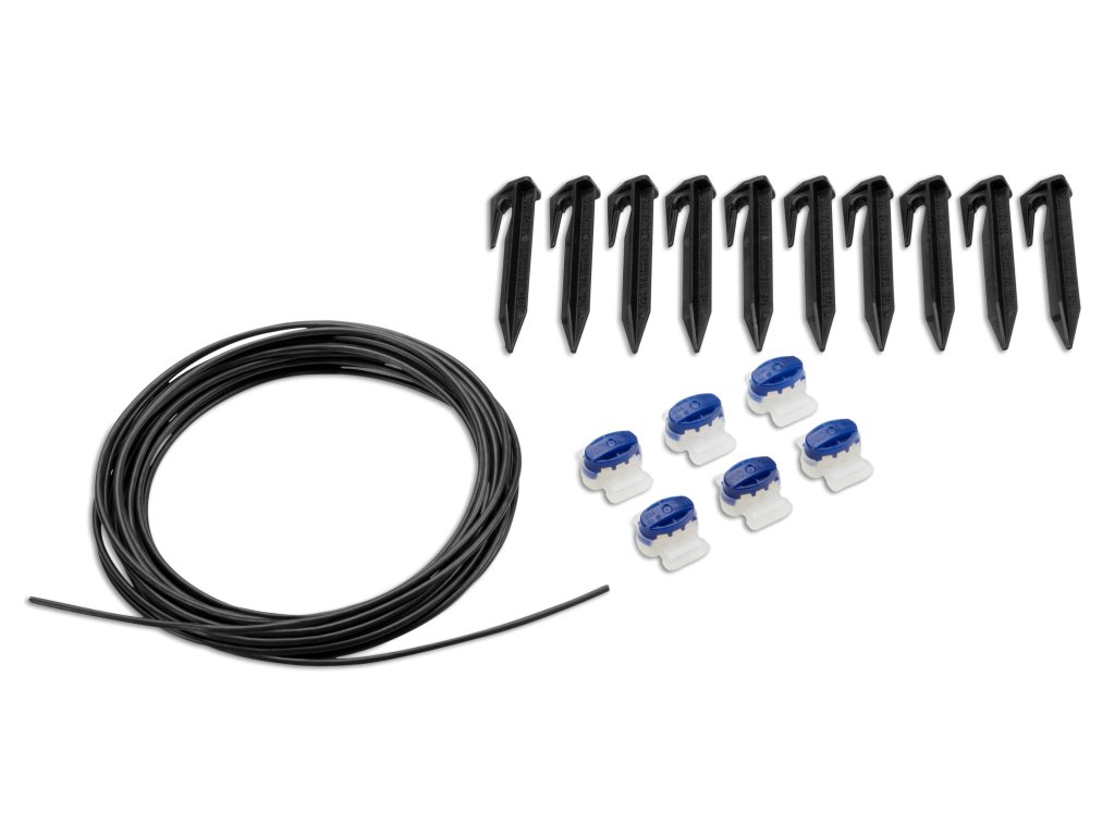 Ideálna súprava, sada pre opravu menších poškodení vodiča ohraničenia, napríklad pri náhodnom mechanickom poškodení vodiča. Súprava je tiež užitočná, ak potrebujete vykonať malú úpravu vo vedení vodiča ohraničenia na vašom trávniku. Bezpečná oprava a vodeodolná inštalácia. Opravná sada obsahuje: 5 m UV kábla ohraničenia, 6 ks gelových spojok vodiča a 10 ks skôb na upevnenie vodiča.